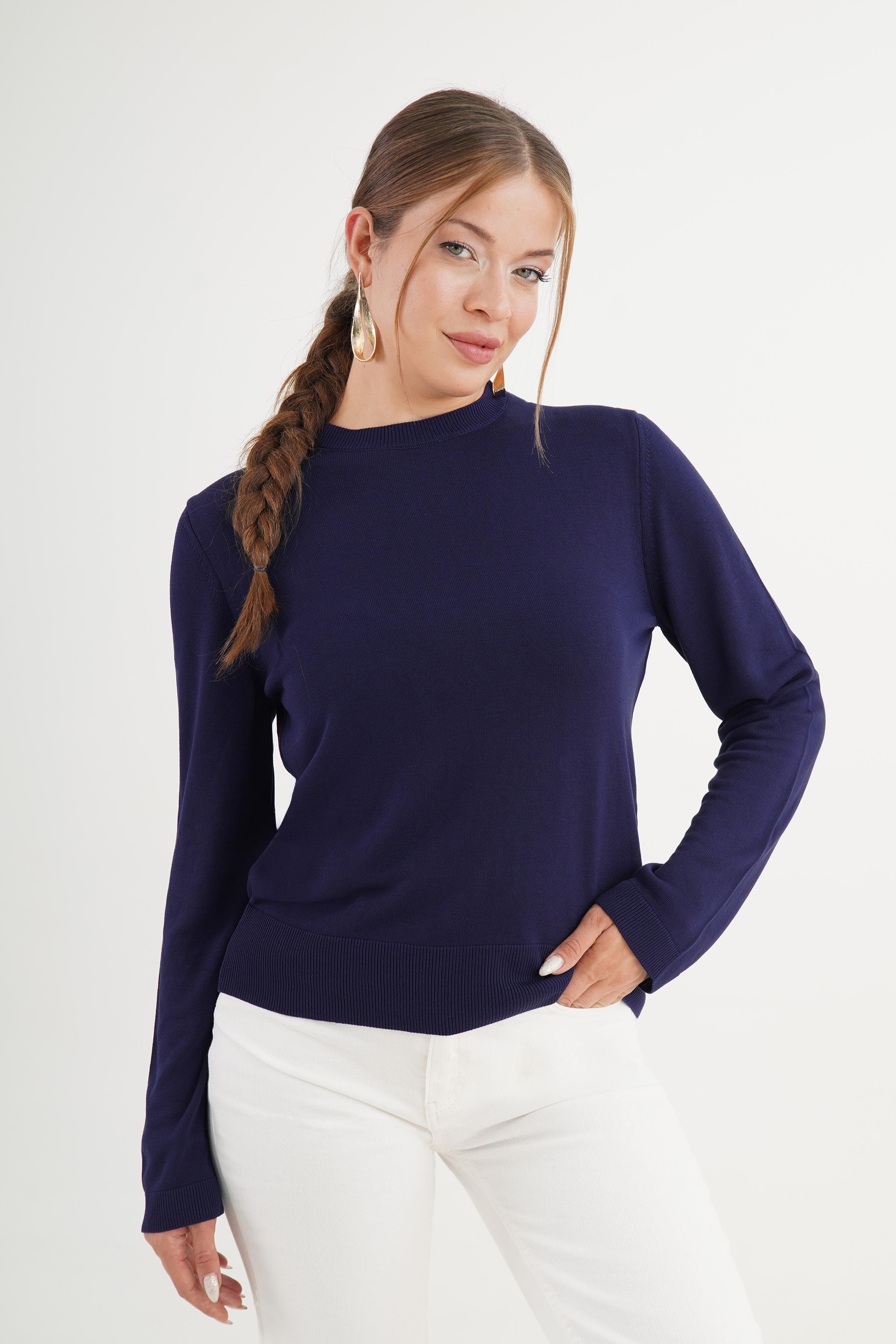 Bisiklet Yaka Basic İnce Lacivert Triko Kazak (2001-6632)