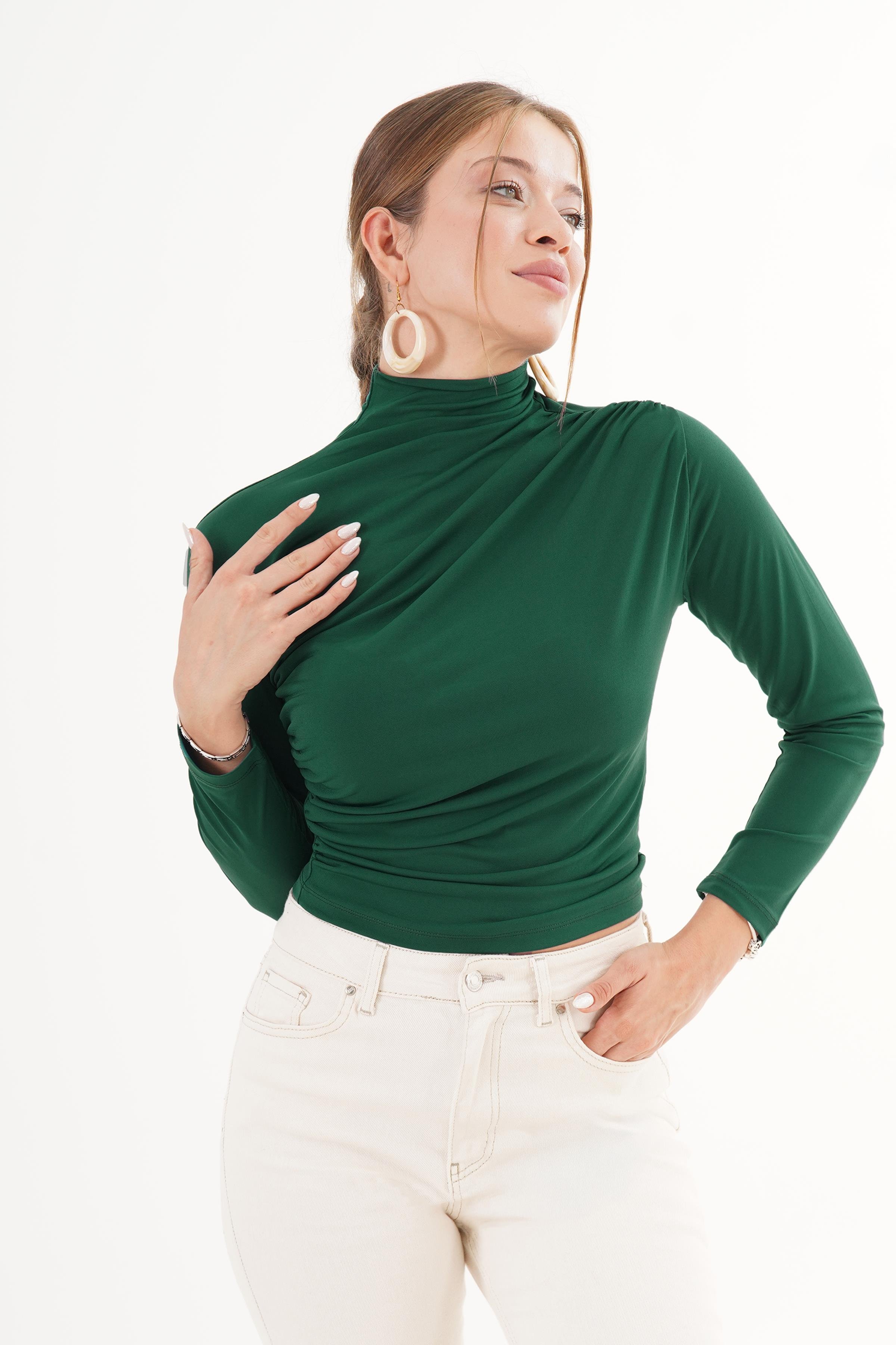 Şıklığı ve zarif detaylarıyla öne çıkan büzgü detaylı dik yaka sandy bluz, modern ve feminen stilinize sofistike bir dokunuş katıyor. Hafif ve akışkan sandy kumaşı sayesinde hem günlük kullanıma hem de özel davetlere uygun olan bu bluz, büzgü detaylarıyla hareketli bir görünüm sunar. Dik yaka tasarımı ile elegan bir duruş kazandırırken, pantolon, etek veya ceketlerle kolayca kombinlenebilir. Gardırobunuzun kurtarıcı parçalarından biri olacak şık bir seçenektir.