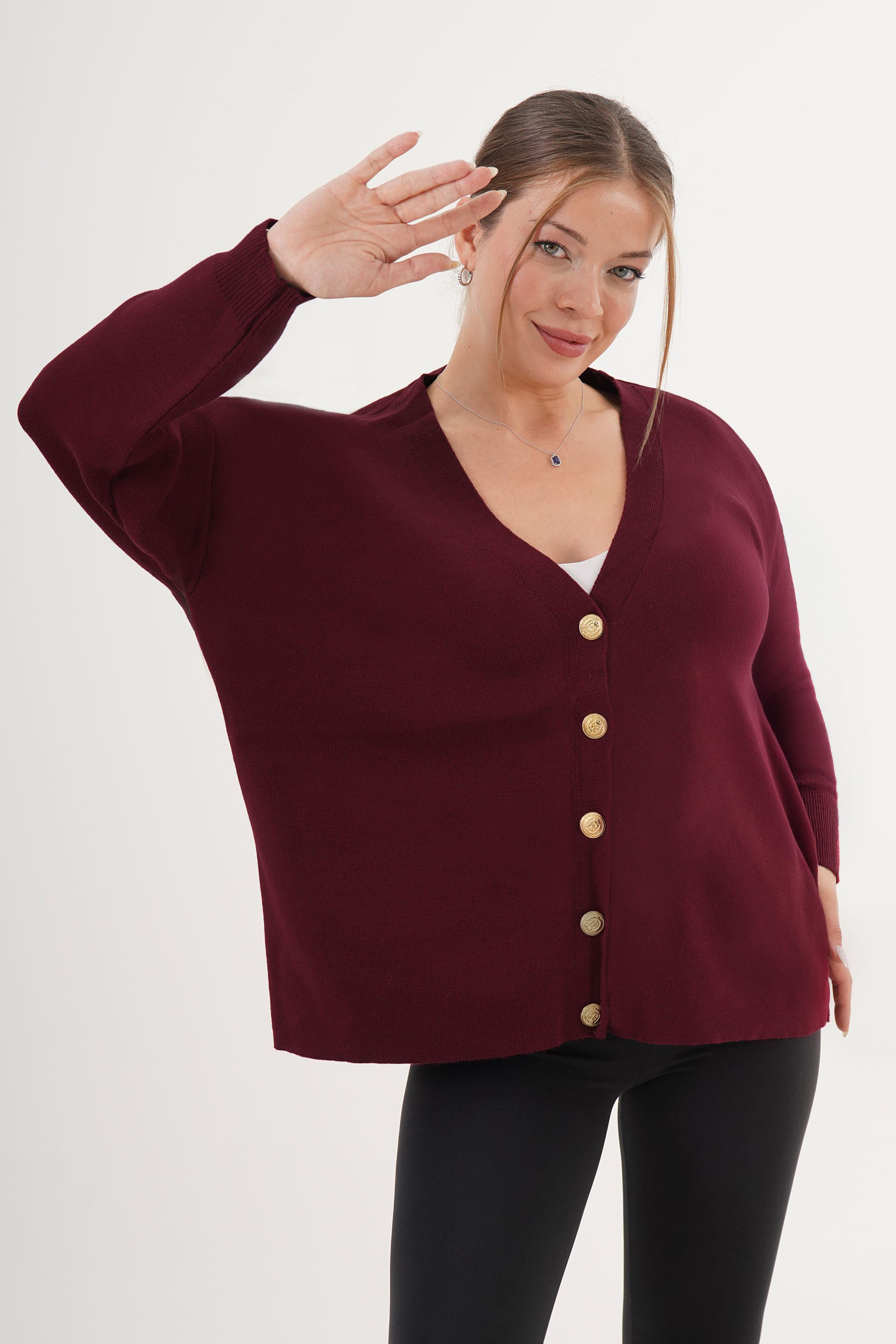 Şıklığı detaylarda saklı! Gold Düğme Detaylı V Yaka Triko Hırka, 2025-2026 kış sezonunun zarif ve modern favorilerinden. Yumuşacık triko dokusu ve özenle tasarlanmış altın düğme detaylarıyla hem ofis stilinde hem günlük kombinlerde fark yaratır. Jean, etek veya elbiselerle tamamlayarak kış stiline sofistike bir dokunuş katabilirsin. Her kombinde stilini ön plana çıkaran bir parça!